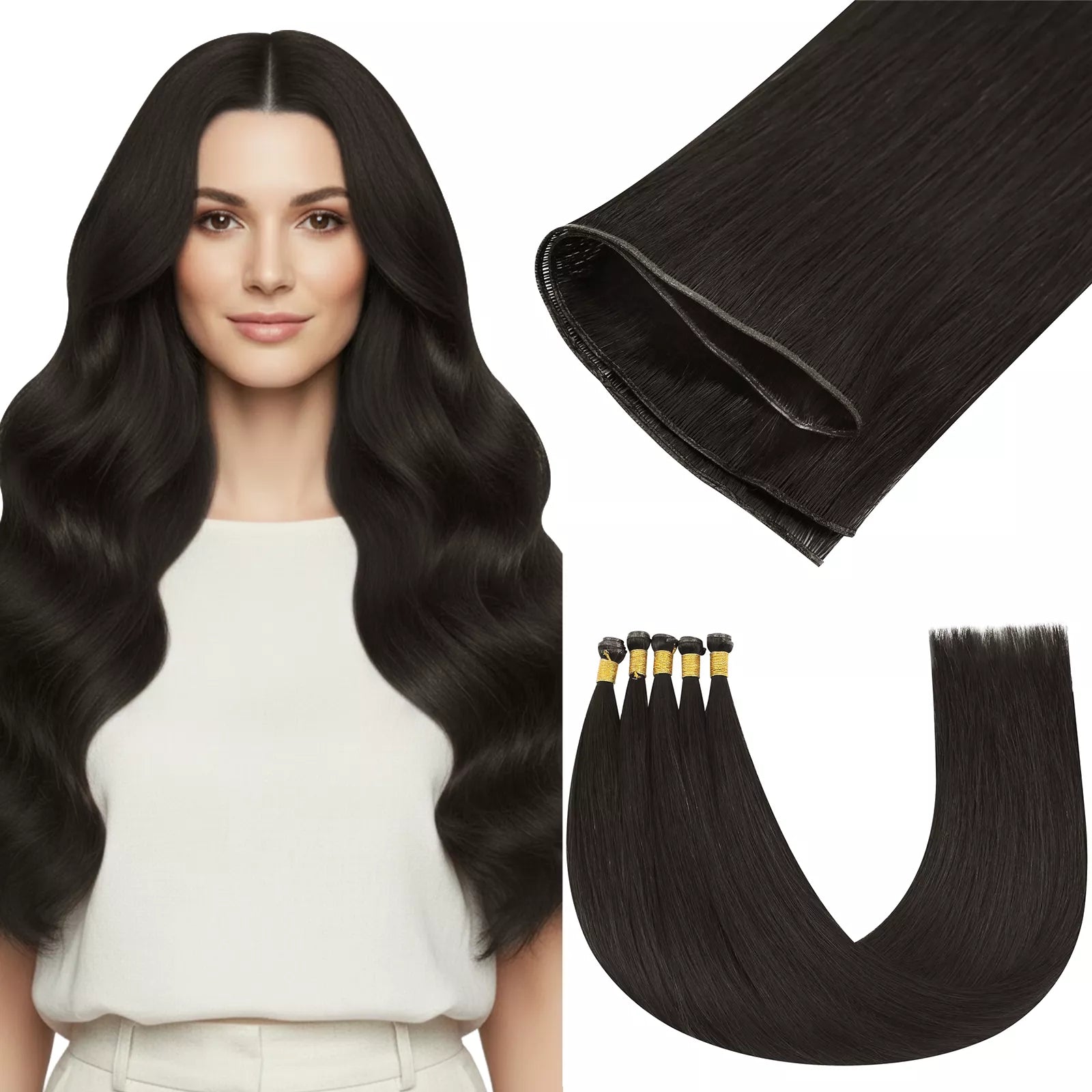 Genius Weft, also called Hybrid Weft, is extremely thin, flat, and lightweight. Its smart design removes return hair, so there’s no scalp irritation, matting, or shedding. You can cut these extensions, and they won’t shed afterward. With Genius Weft, you get the thinnest, most adjustable weft hair extensions. They blend easily with your natural hair, letting you style it in many ways for any occasion.