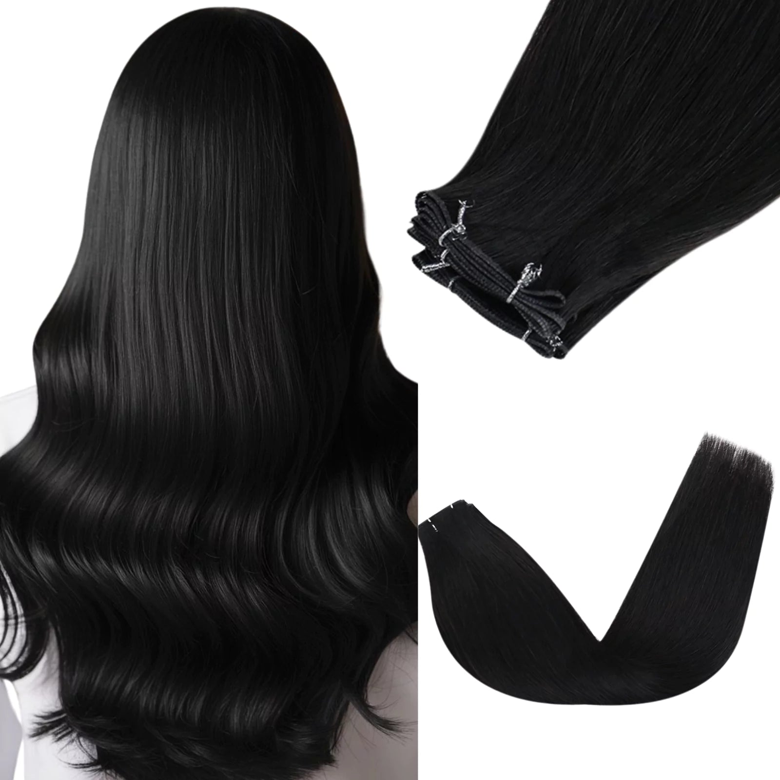 Hybrid Weft Virgin Human Hair Extensions Jet Black #1